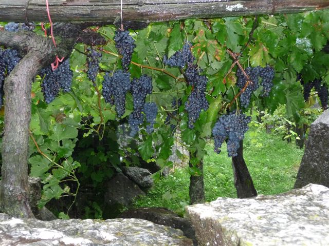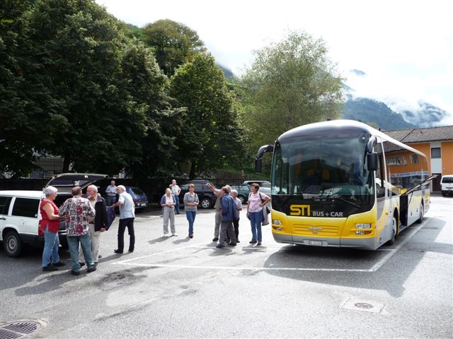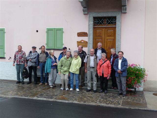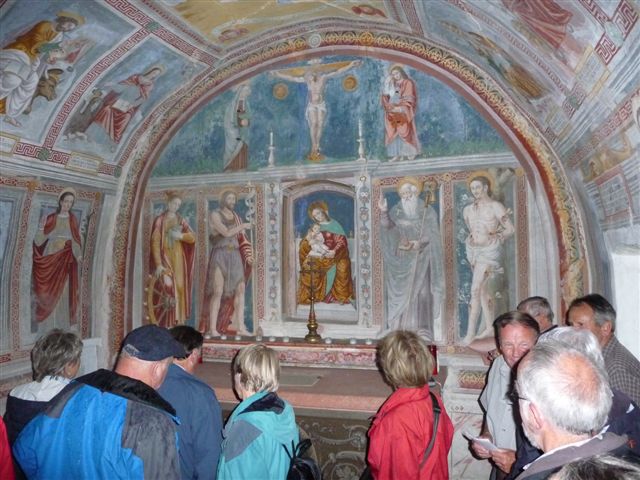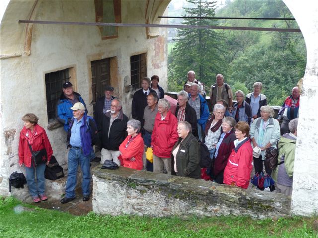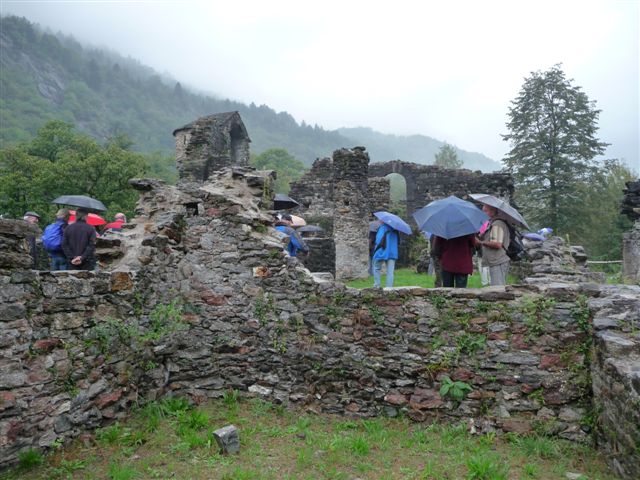 Besichtigung der Ruine Castello di Serravalle im Regen |